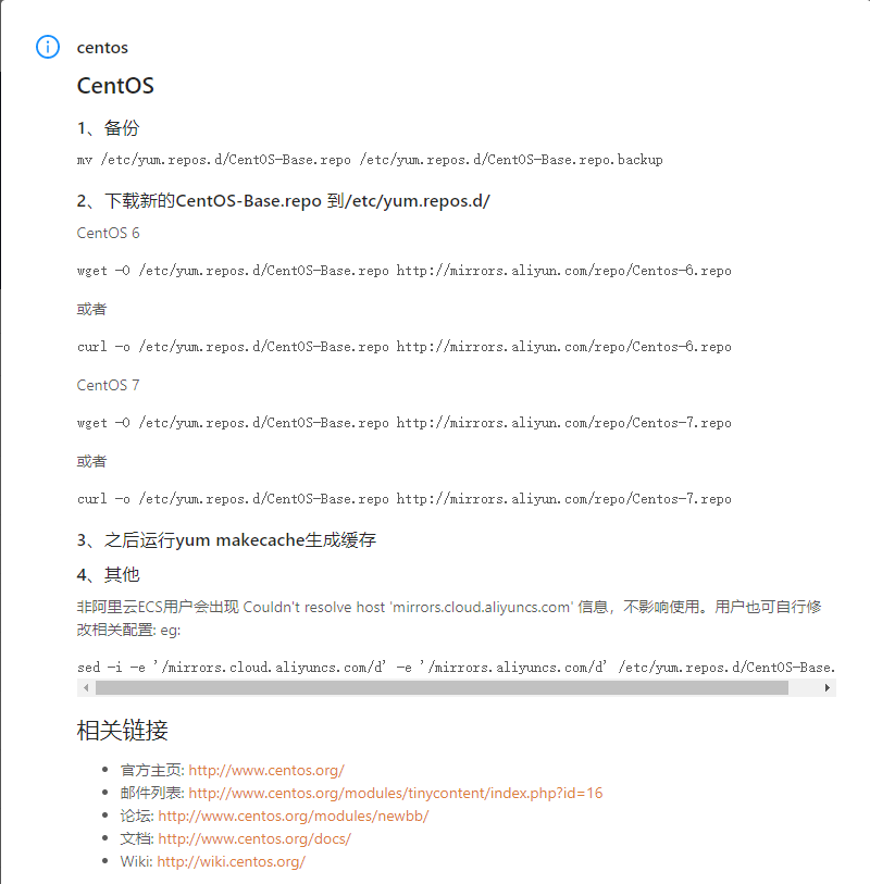 点击图中的CentOS的帮助按钮,可以获得如何设置Yum的帮助信息