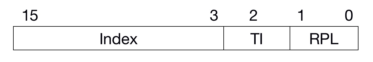 TI为段寄存器类别,0为使用GDTR,1为使用LDTR。